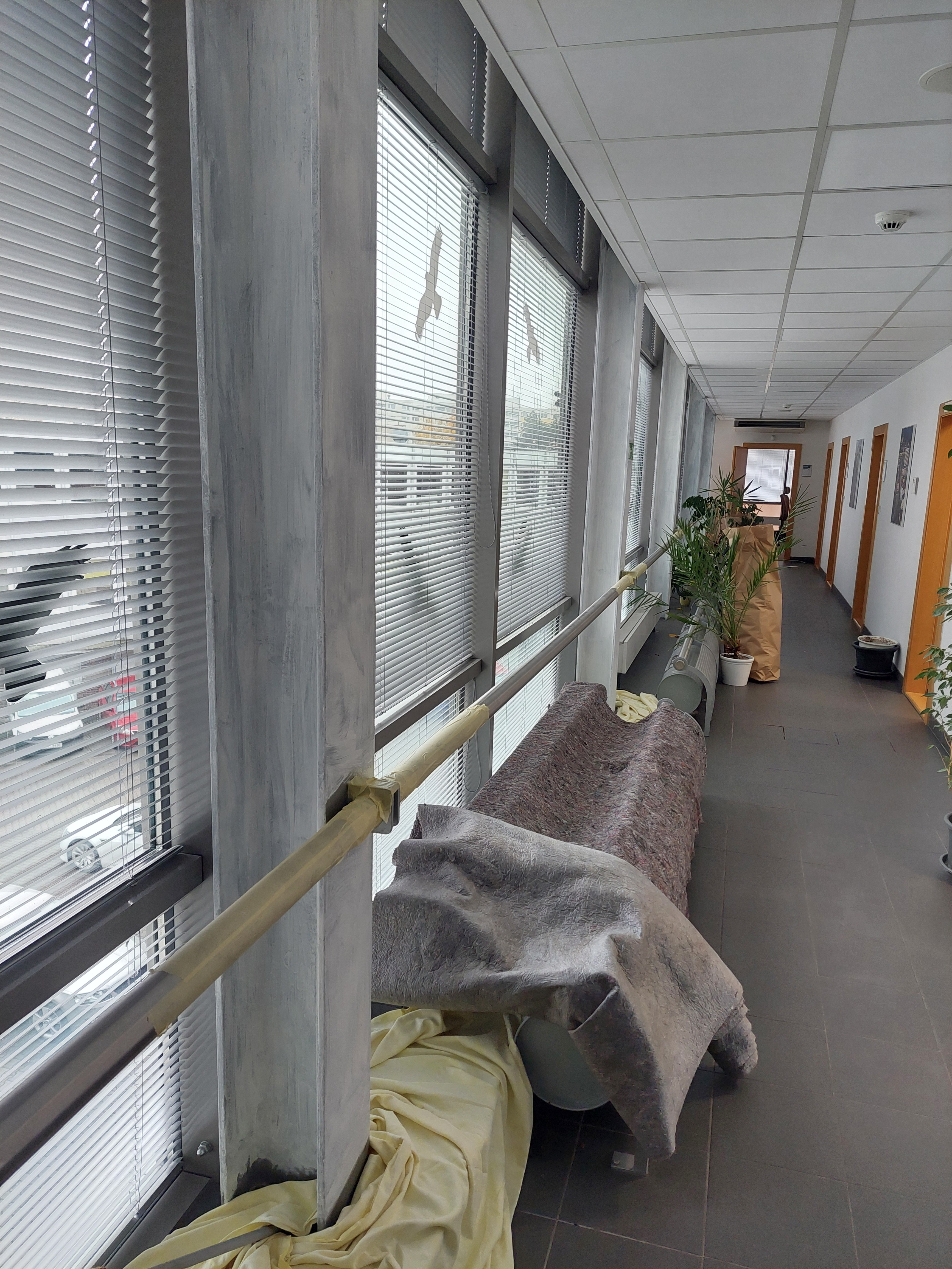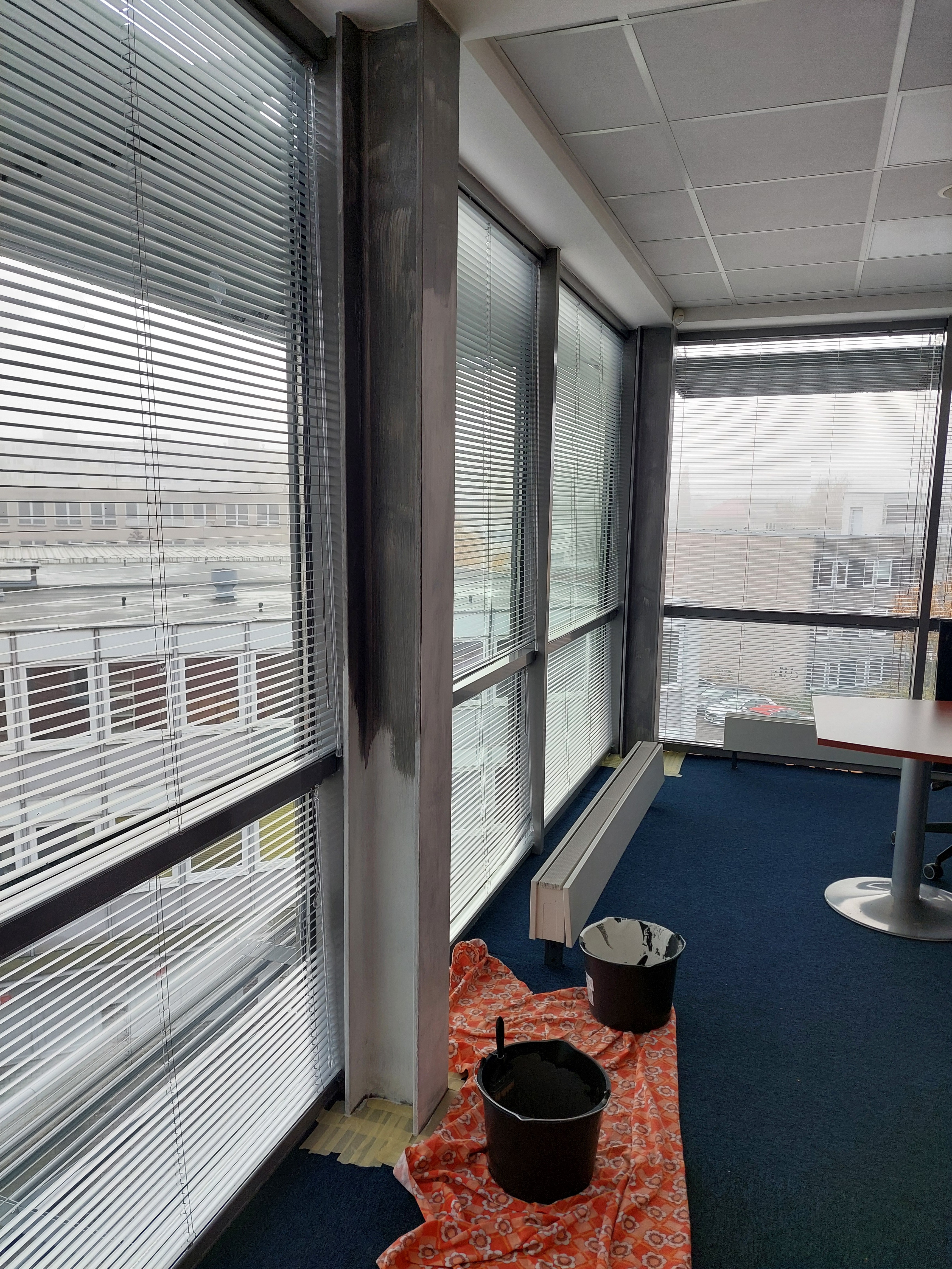 Aplikace protipožárního nátěru ocelových nosníků.