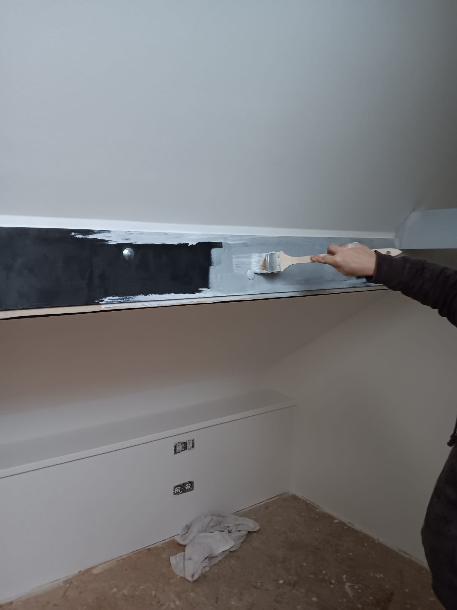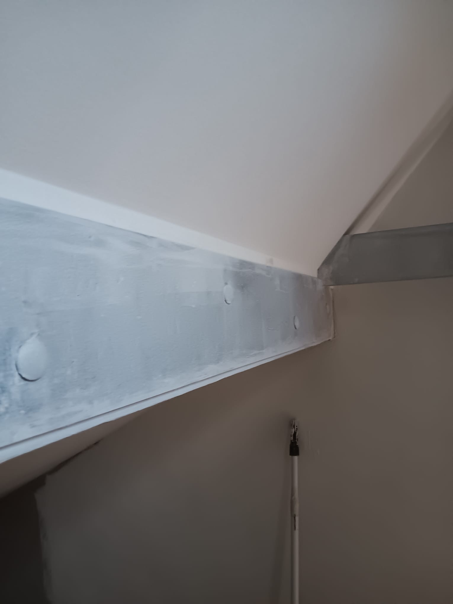 Aplikace protipožárního nátěru na ocelové prvky v půdní vestavbě. Požární odolnost R30minut.